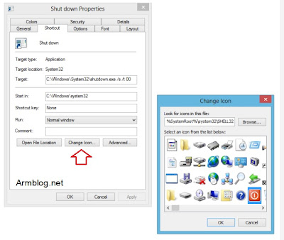 Կոճակներն ավելի գեղեցիկ դարձնելու համար եկեք փոխենք դրանց նշանները: Դրա համար աջ քլիք արեք կոճակի վրա, ընտրեք Properties, որից հետո Change icon: